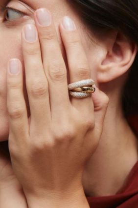 Anillo ancho cruzado Délum con circonitas Vidal & Vidal