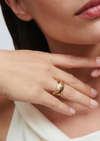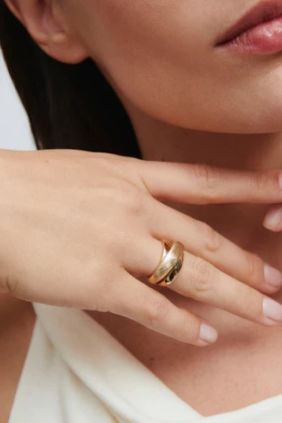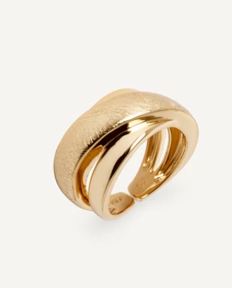Anillo tiras textura Arc bañado con una gruesa capa de oro macizo de 18 kt