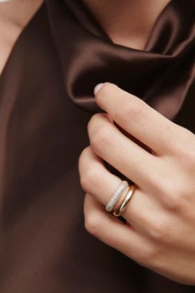 Anillo dúo abierto Allure bañado con una gruesa capa de oro macizo de 18 kt