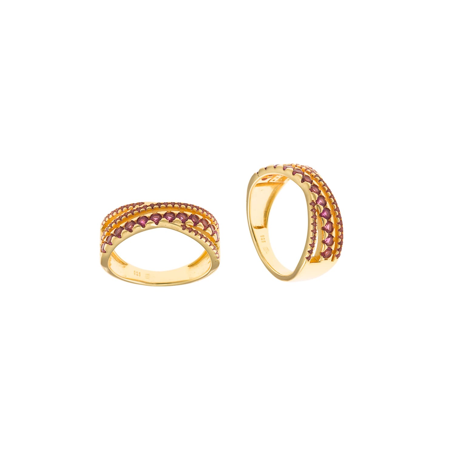 Anillo múltiple colección Rouge dorado circonitas rosas Salvatore Plata