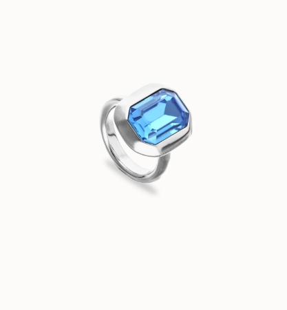 Anillo bañado en plata rectangular y cristal facetado en color azul Unode50