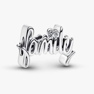 Un brillante recordatorio de lo que más importa. Este charm en plata de primera ley se presenta con la inscripción "family" (familia) escrita a mano con una circonita cúbica adornando el punto sobre la "i". Es un homenaj