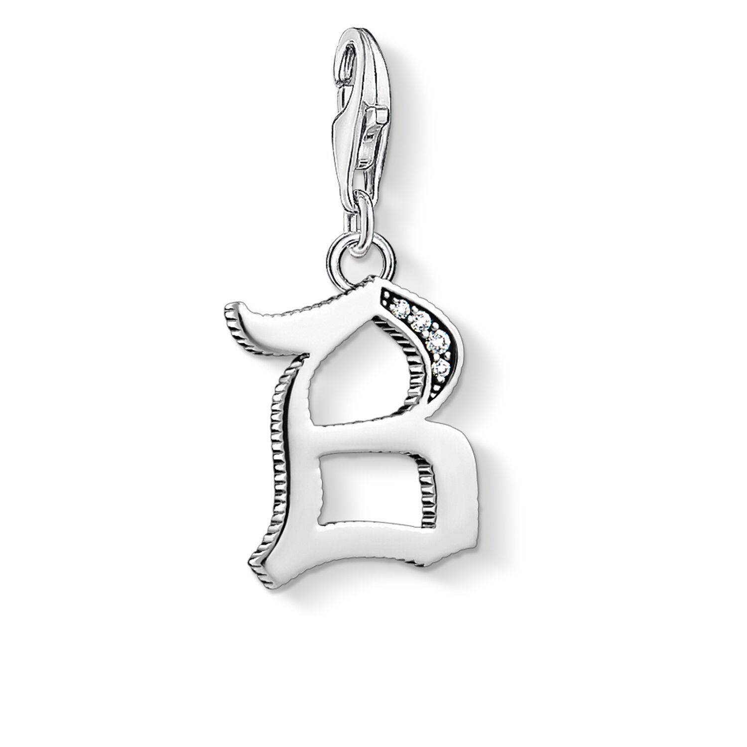 La letra de estilo vintage de este Charm nos fascina con su brillo plateado y sus maravillosos centelleos. El accesorio imprescindible para un look individual.