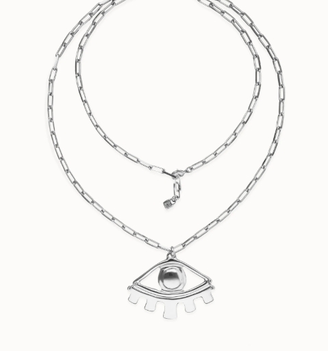 Collar largo bañado en plata de ley con ojo grande Unode50