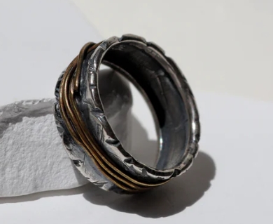 PlatadePalo Anillo Hombre Rakka de plata con hilos de bronce