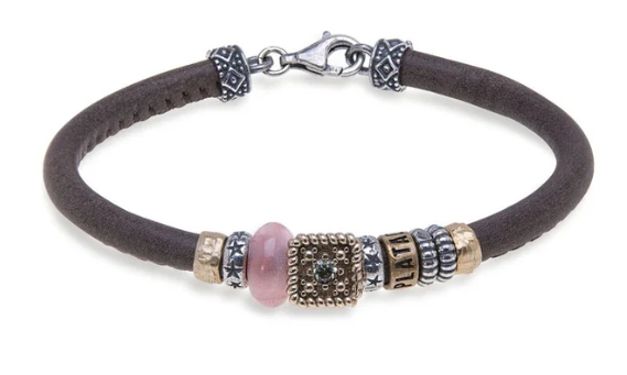 Bruna es una pulsera que encapsula la identidad de nuestra marca. El cuero, la Plata 925 y el bronce se unen al cristal rosa, creando una pieza única que refleja la artesanía y el detalle, convirtiéndose en un símbolo de tu estilo distintivo y tu conexión con PLATADEPALO.