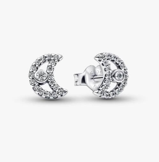 Celebra la magia de la Navidad. Estos pendientes de botón en plata de primera ley y adornados con circonitas cúbicas transparentes se presentan con un delicado diseño de media luna y son un bonito recordatorio de la intu