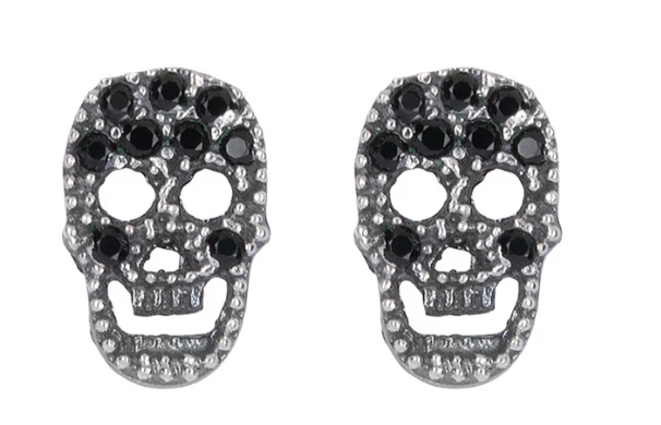 Pendientes unisex Seikatsu de calaveras en plata 925 con pequeños circonitas negras engastadas.