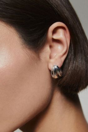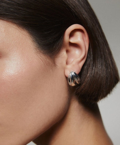 Pendientes Curva bañados en plata de ley 925 de la colección Organic. Con un cierre a presión y una longitud de 14 mm, añaden elegancia a cualquier conjunto.