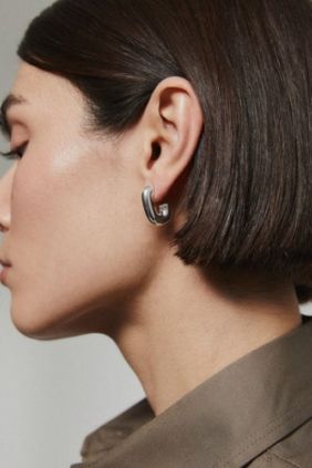 Pendientes Hex bañados en plata de ley 925 de la colección Bold. Con cierre a presión y una longitud de 20 mm, son la elección ideal para complementar cualquier look con distinción y elegancia.