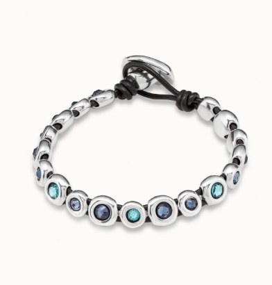 Pulsera de cuero marrón bañada en plata de ley y cristales azules Unode50