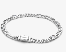 Celebra el amor con nuestra pulsera de cadena cubana en plata de primera ley. Adornada con gemas con forma de corazón a intervalos a lo largo de la pulsera, póntela como símbolo atemporal de afecto y elegancia.
