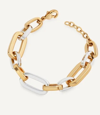La pulsera Duo de la colección Chains está chapada en oro de 18 ktes. Esta elegante pieza de joyería cuenta con una longitud de 18+3cm, que incluye una cadena ajustable para un ajuste perfecto y cómodo. Un accesorio sofisticado y versátil que realzará cualquier atuendo con su brillo sutil y atemporal.