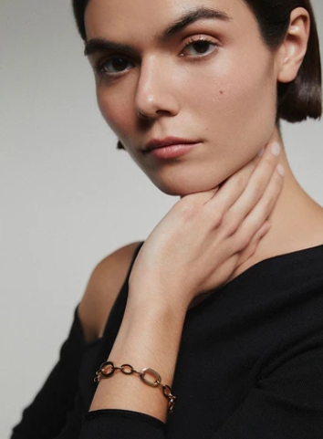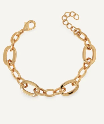 Pulsera Carina, bañada en oro de 18 kt de la colección Bold. Con una longitud de 17 cm más una cadena ajustable de 5 cm, ofrece un toque de elegancia y versatilidad para complementar cualquier look.