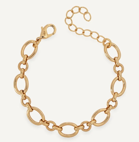 Pulsera eslabones Pavó bañada con una gruesa capa de oro macizo de 18 kt, lo que garantiza una mayor durabilidad. Tiene una longitud de 17 cm + 5 cm de cadena ajustable.