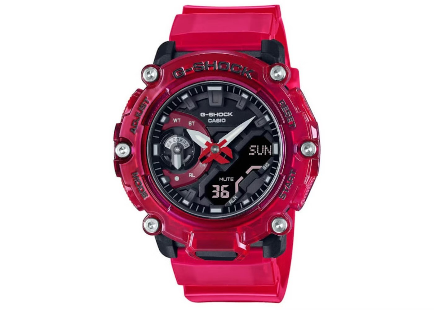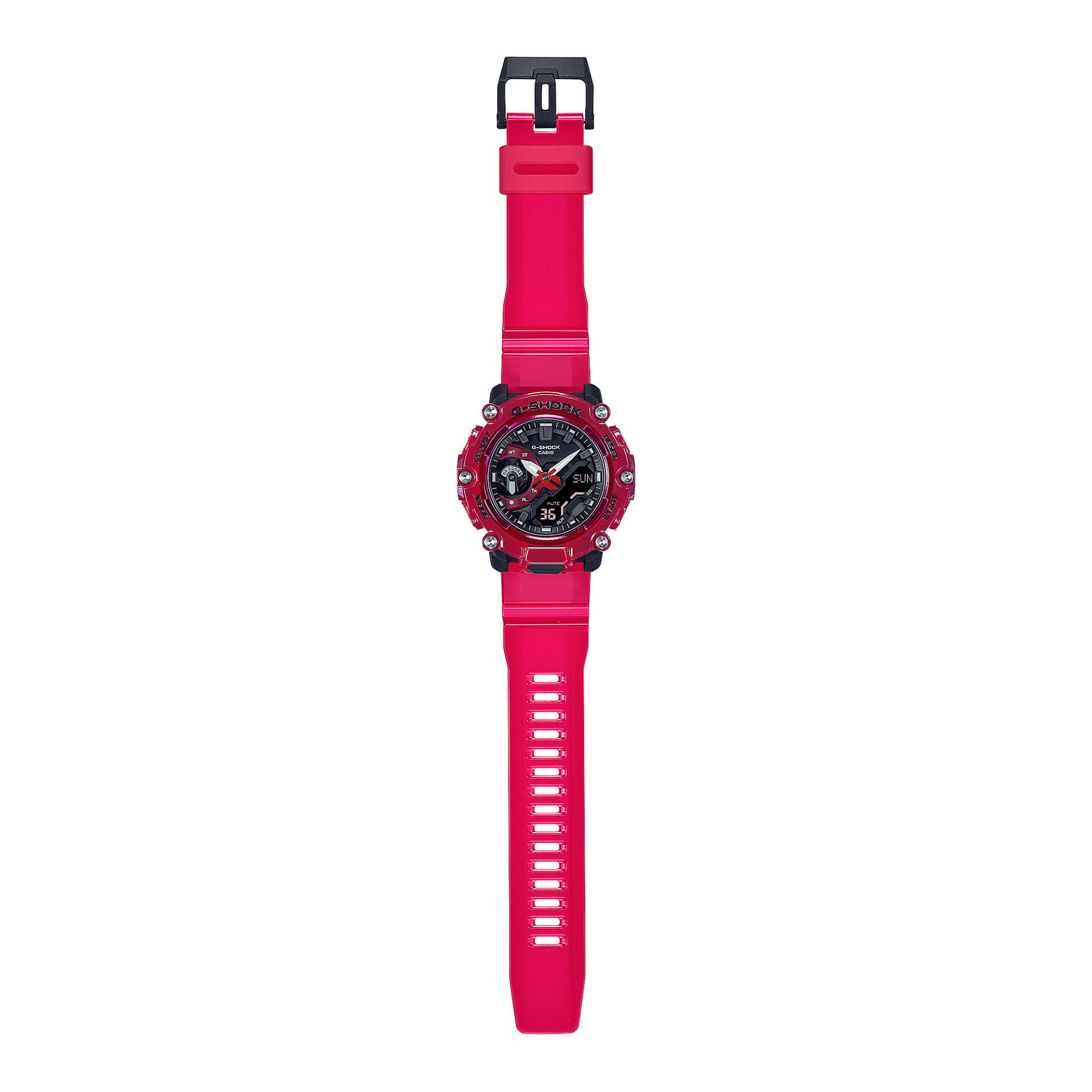 Sumérgete en las ondas sonoras del G-SHOCK. Para materializar su fuente de inspiración —una explosión de sonido en una pista de baile—, estos relojes utilizan el color y el diseño para crear una versión estereofónica del deportivo GA-2200 con manecillas analógicas y pantalla digital.