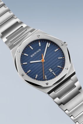 Este reloj para hombre de la colección Classic de BERING combina líneas limpias con una presencia dinámica. La caja de acero inoxidable cepillado con tornillos visibles proyecta fuerza y modernidad, evocando la precisión técnica y la estética escandinava. La esfera azul profundo con textura horizontal recuerda la superficie tranquila del mar Ártico.