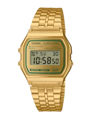 Un toque clásico con un giro moderno. El icónico A158 se reinventa con una llamativa combinación de dorado y acentos verdes. Su diseño unisex lo convierte en una pieza atemporal, ideal para cualquier ocasión. El brazalete metálico de varias hileras presenta un elegante acabado mate, mientras que el cristal, tratado con un revestimiento al vapor, añade un sutil pero deslumbrante brillo. Este reloj no solo destaca por su estilo, sino también por su funcionalidad. Equipado con retroiluminación LED, cronómetro, alarma y más, es la perfecta combinación de moda y practicidad.