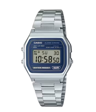 Disfruta del estilo vintage en un sofisticado azul: el siempre popular y fácil de usar A158 en un tono aún más elegante. Desde su debut en 1989, el A158 ha sido uno de los favoritos, gracias a su diseño sencillo que nunca envejece, su banda metálica de tacto premium y su precio asequible. El A158WEA realza este atractivo atemporal con un toque de azul frío en la esfera. Otra elección de diseño atrevido con la comodidad ligera que te encanta en el A158.